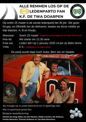 K.F. De Twa Doarpen organiseert op snein 25 maaie de earste ledenpartij fan it jier!