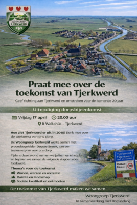 Uitnodiging – samen richting geven aan de toekomst van Tjerkwerd vrijdag 17 april om 20.00 in It Waltahûs.